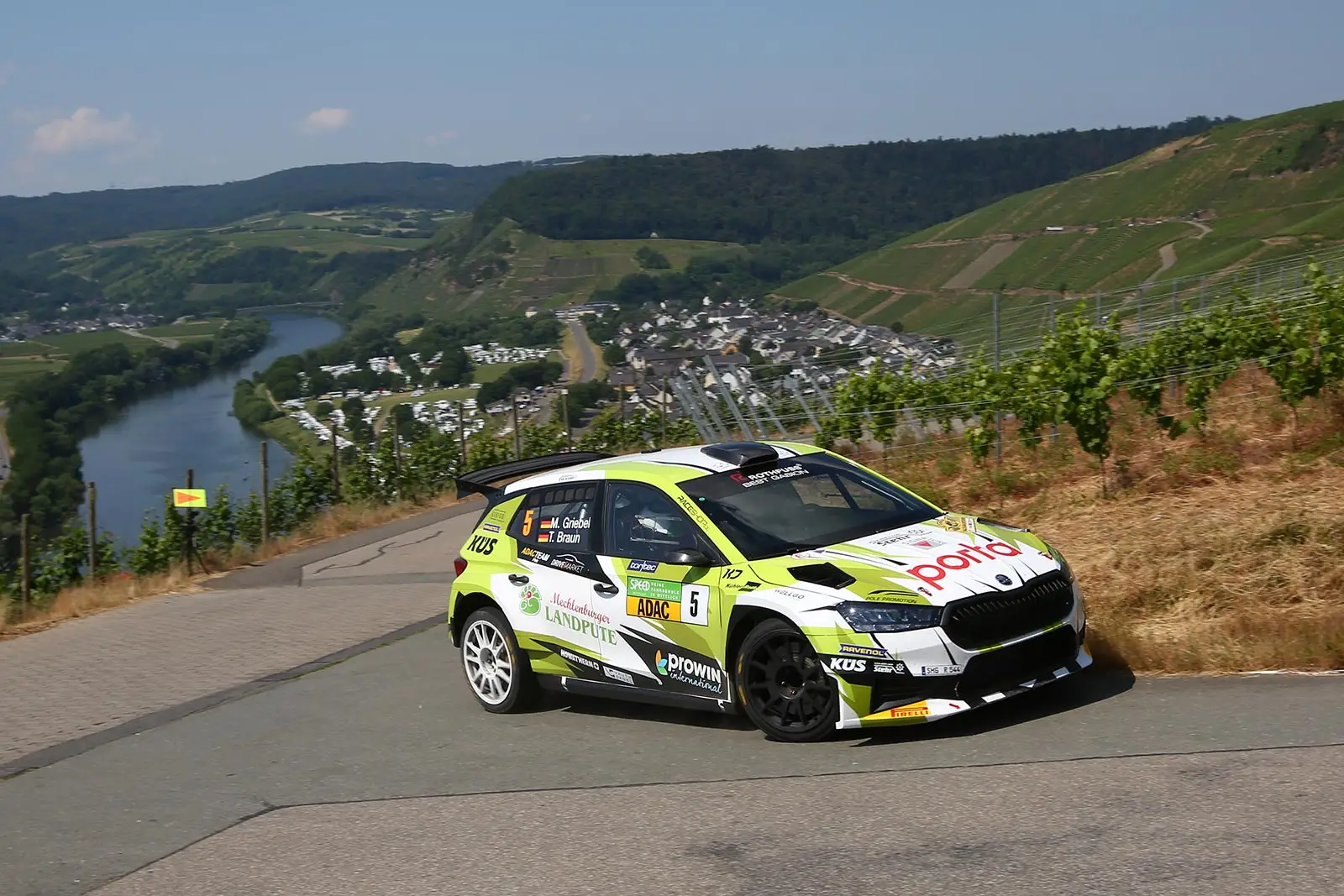 Zusammen mit Co-Pilot Tobias Braun drehte er am Samstag in seinem Revier – er stammt aus Hahnweiler/Pfalz – noch einmal richtig auf, gewann vier der sechs Tageswertungen und wiederholte den Sieg aus dem Vorjahr. Er ist damit aktuell der neue DRM-Spitzenreiter. Für die über 80 Starter erwies sich die Rallye ADAC Mittelrhein durchweg als hartes Pflaster. Schwierige Prüfungen auf Asphalt und teilweise Schotter, unübersichtliche Abzweige und Kuppen in den Weinbergen und Temperaturen von über 30 Grad stellten alle Teilnehmer vor große Herausforderungen. Nach mehreren Unfällen mussten zwei Wertungsprüfungen abgebrochen werden, sodass sich die Gesamtdauer der Rallye etwas verkürzte und die Teams am Samstag früher ins Ziel kamen.
