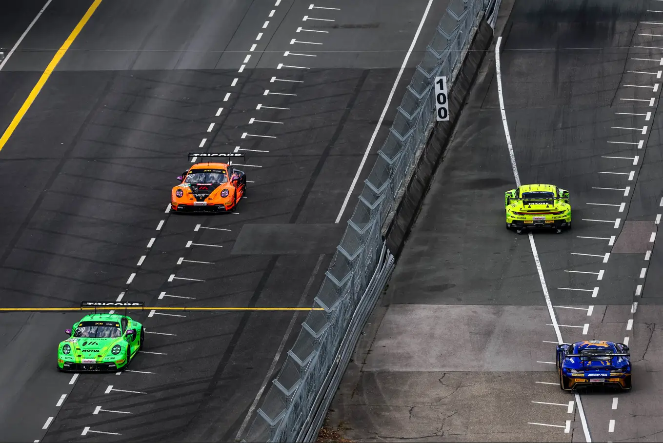 Im Sonntagsrennen verbesserte sich Thomas Preining bereits in der ersten Kurve von Startplatz sechs auf Rang drei. Nach nur drei Rennminuten wurde das Rennen infolge einer Kollision mit der roten Flagge unterbrochen. Schuring, der erneut von Platz neunzehn gestartet war, konnte dem Unfall der vorausfahrenden Fahrzeuge nicht mehr ausweichen. Sein Neunelfer wurde an Front und Heck beschädigt, woraufhin er die Boxengasse ansteuerte. Innerhalb weniger als zehn Minuten gelang es dem Team, das Fahrzeug mit der Startnummer 92 während der Rennunterbrechung wieder einsatzbereit zu machen. Schuring nahm das Rennen vom Ende des Feldes wieder auf.