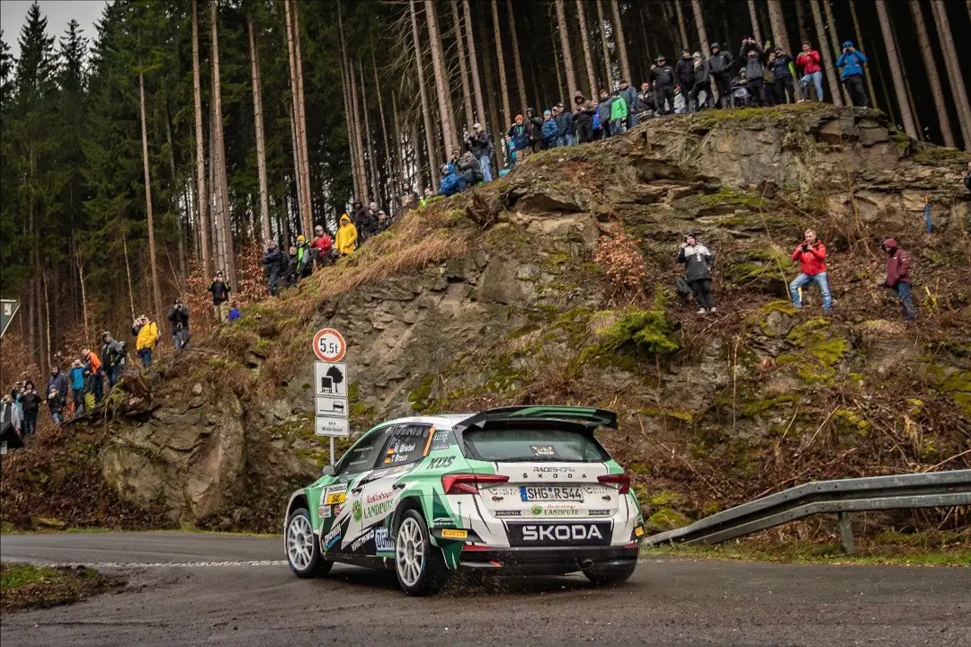 Die zwölf Wertungsprüfungen der Erzgebirgsrallye führten von gewöhnlichen Asphaltstraßen über Betonplattenwege bis hin zu harten Schotterpisten und forderten Mensch und Material alles ab. Das ständig wechselnde Wetter trug letztlich seinen Teil dazu bei, dass der Auftakt zu einem echten Prüfstein wurde.