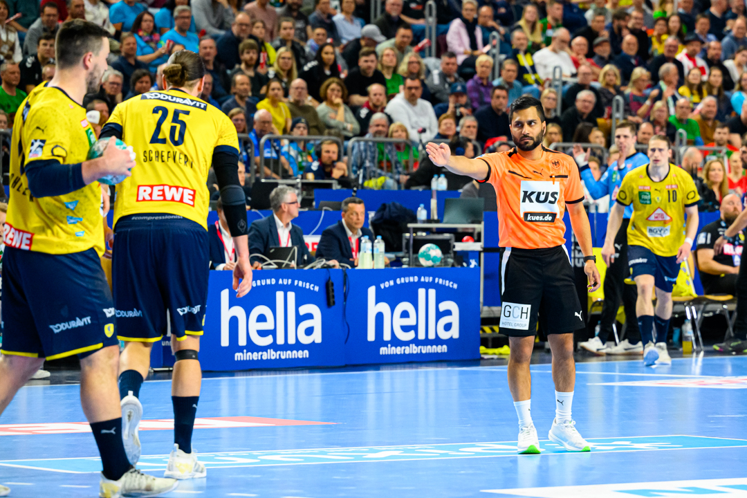 Handball: DHB-Pokal, Rhein Neckar Löwen – SC Magdeburg, Final Four, Finale, Lanxess Arena Schiedsrichter Suresh Thiyagarajah