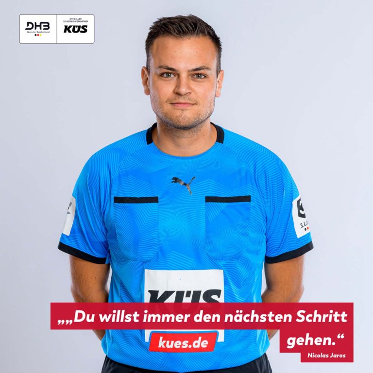 Nach sechs Jahren in der 3. Liga – mit Highlights wie einem Derby bei den Männern vor 8.500 Zuschauern – stieg das Schiedsrichterteam Jaros/Thrun im Sommer in den Bundesligakader auf. Dort wollen sich die Freunde nun erneut beweisen – und haben das nächste Level vor Augen: Nach dem Debüt in der 2. Bundesliga der Männer hoffen sie auf ihre erste Ansetzung in der 1. Bundesliga der Frauen. „Wir machen uns keinen Druck und vertrauen dem Plan, den Jutta (Jutta Ehrmann-Wolf, Leiterin Schiedsrichterwesen im Deutschen Handballbundes, Anm. d. Red.) für uns hat“, sagt Jaros.