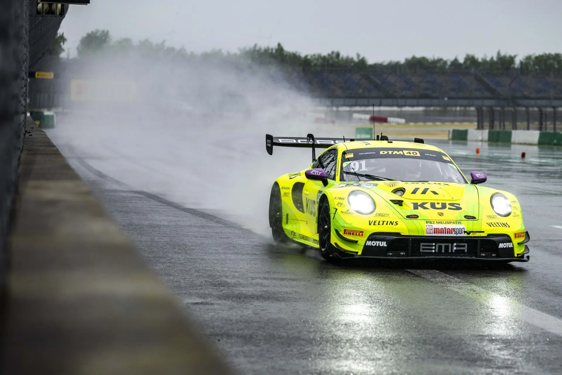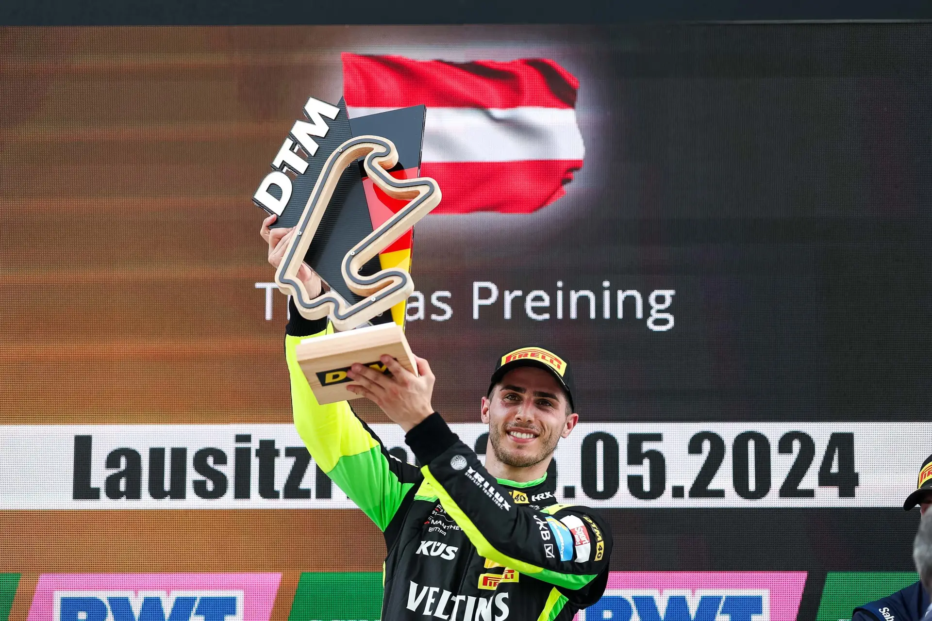 Am Lausitzring gab es für den Österreicher Thomas Preining mit dem Grello am Sonntag den ersten Sieg der DTM-Saison. Zuvor hatte er im Samstags-Qualifying mit dem Manthey-Porsche 911 GT3 R Rang zwei erreicht. Während das Qualifying noch bei Sonnenschein stattfand, setzte unmittelbar nach dem Rennstart leichter Regen in der Lausitz ein, der schnell in Starkregen überging. Zwei Rot-Phasen führten wegen auf der Strecke stehenden Wassers zur Unterbrechung des Rennens. In den verbleibenden 33 Minuten nach dem zweiten Restart hinter dem Safety-Car behauptete Preining seine dritte Position und sicherte sich damit sein erstes Podiumsergebnis in der DTM-Saison 2024.