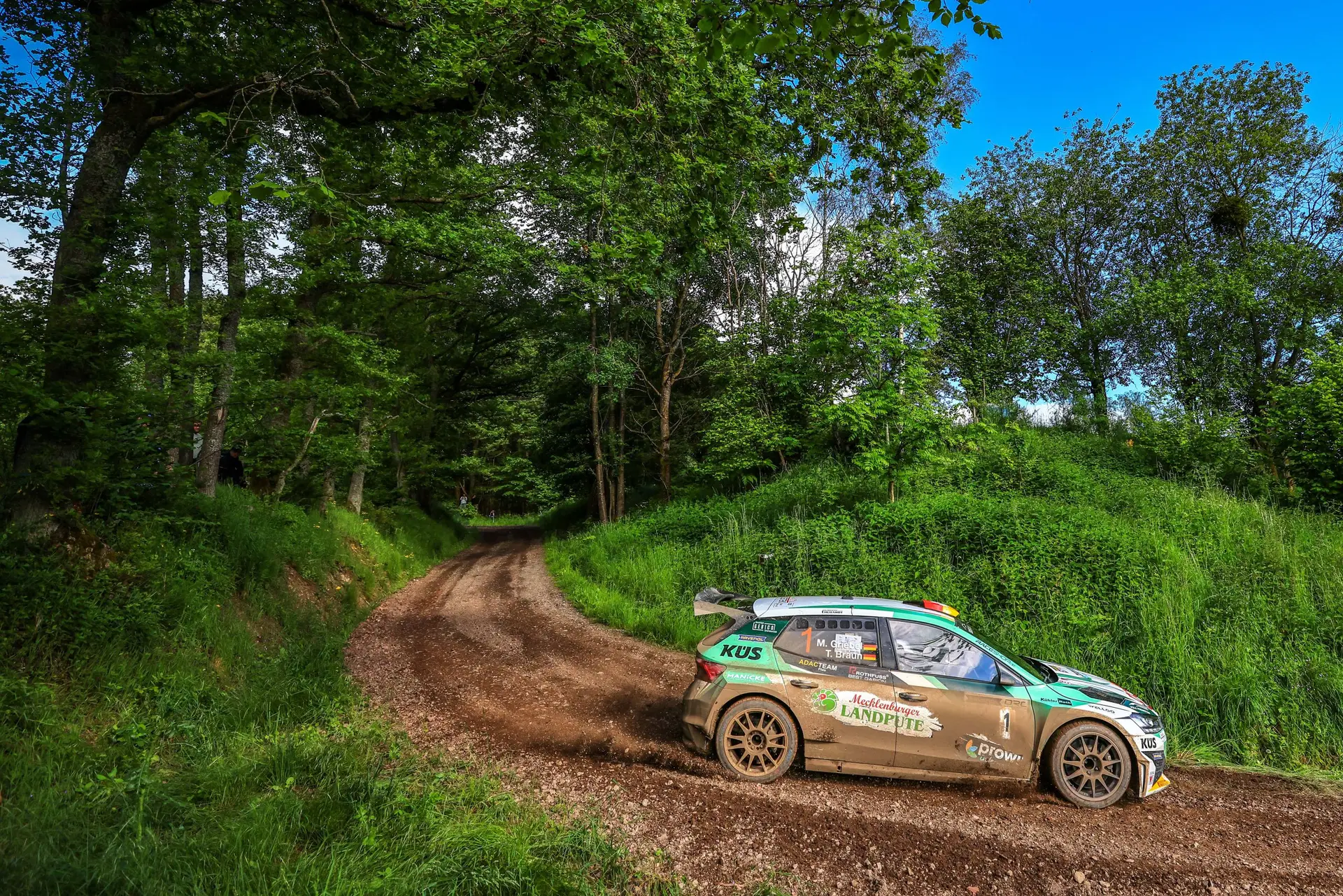 Das Duo Griebel/Braun setzte sich vom ersten Meter an die Spitze des Feldes. Mit insgesamt fünf Bestzeiten, darunter auch den beiden mit Extrapunkten aufgewerteten sogenannten „Power Stages“, sicherte es sich den Gesamtsieg und die maximale Punkteausbeute, baute den Vorsprung im Klassement der Deutschen Meisterschaft auf elf Punkte aus.